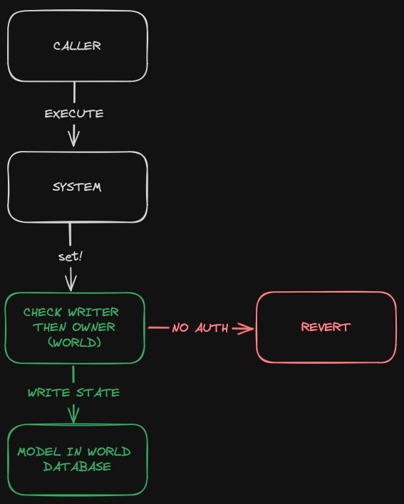 world.grant_writer(selector_from_tag!("my_game"), system_contract);  // Namespace writer (can write to ALL resources in namespace)